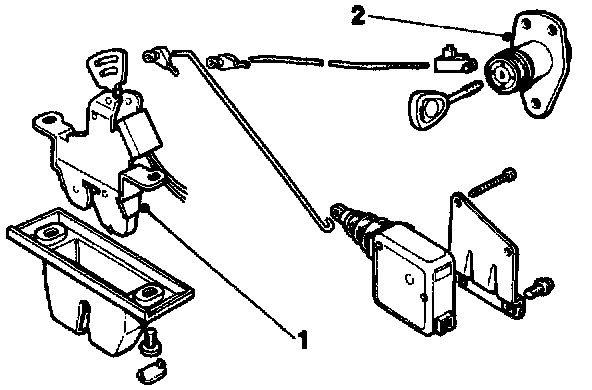 - Remove the two lock assembly securing bolts, remove the lock from the trunk lid and remove the assembly (1 Fig.1) from the vehicle.