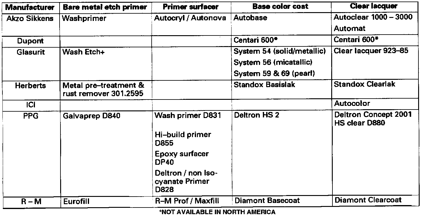 The manufacturer's paint systems listed in Image are currently approved for refinishing Jaguar vehicles.NOTE: * Not available North America