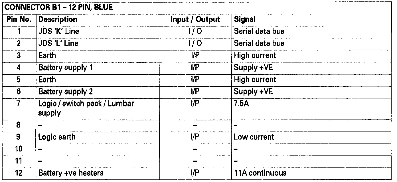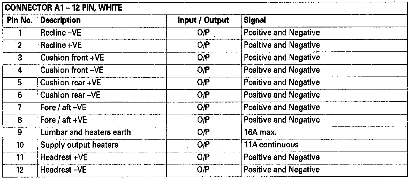 Connectors A1 and A2 form the seat internal harness interface. Connectors B1 and B2 form the cabin/seat link harness interfaceConnector Pin Description (Part 1 of 4)