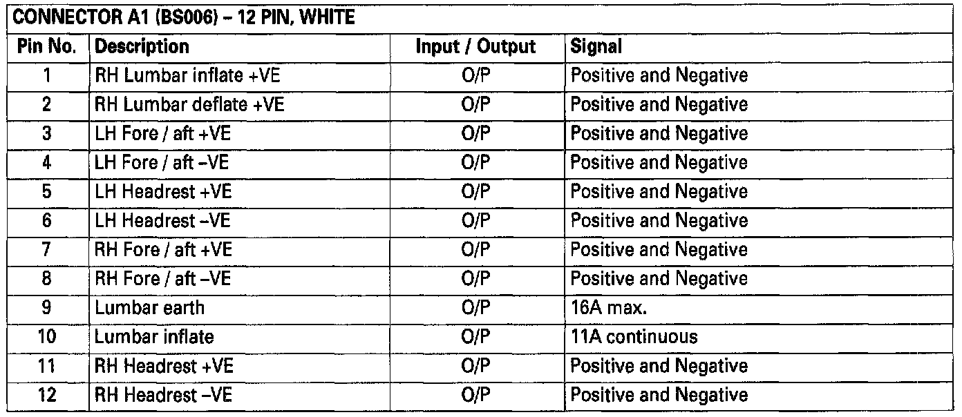 Seat Control Module Connector Pin Connections (Part 1 of 3)