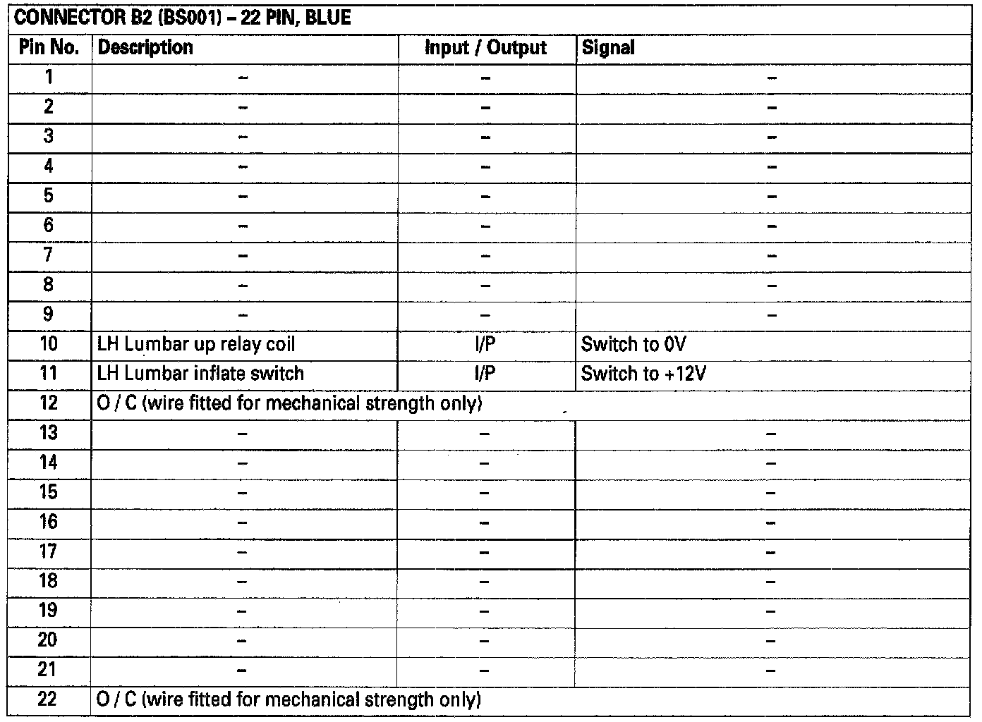 Seat Control Module Connector Pin Connections (Part 3 of 3)