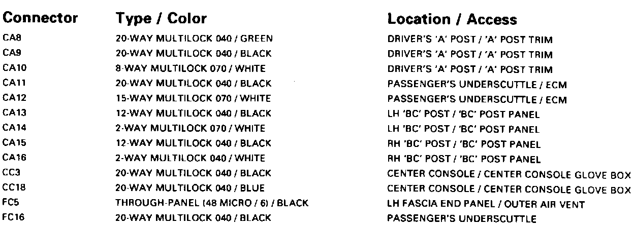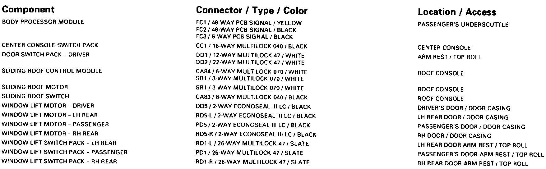 Window Lifts; Sliding Roof-LHD: Harness-To-Harness Connectors: