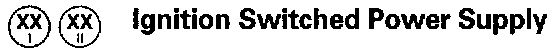 This symbol represents ignition switched power supply and refers the user to figure 01.4. The suffix I indicates auxiliary power. Power is supplied in ignition switch key positions I (Auxiliary) and II (Ignition). The suffix II indicates ignition power. Power is supplied in ignition switch key position II (Ignition) and II (Ignition) and III (Engine Crank).