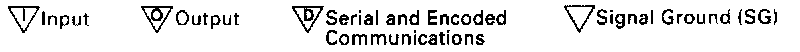 These four symbols are employed to assist the user in visualizing the 'logic' of circuits containing control modules. The symbols identify control module input, output, data line and signal ground pins. These symbols are also employed on the corresponding data page.