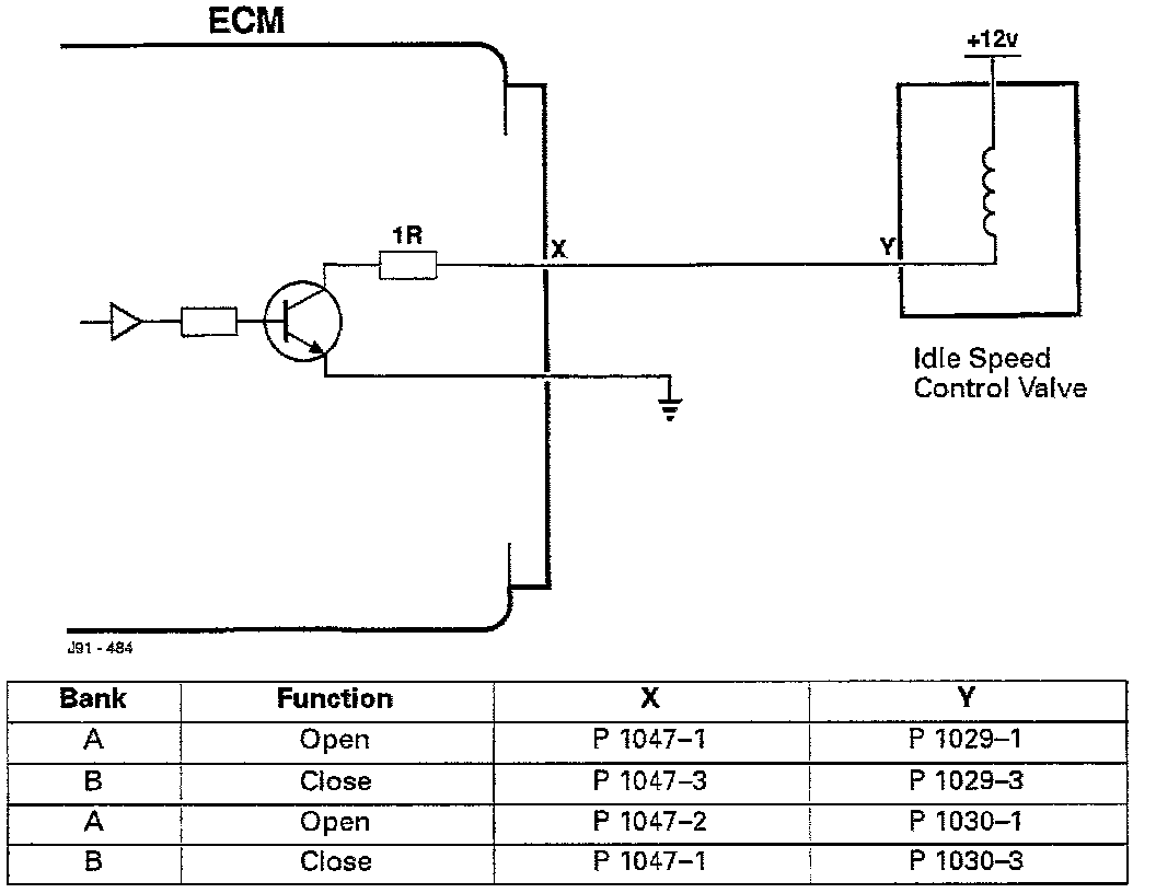 This diagnostic operates only once per trip, during the first long duration hot idle period after engine start. The diagnostic works by changing the position of the idle speed control valve on each bank in turn. If the engine RPM or manifold pressure does not change as expected then a failure judgement is made. The actual engine RPM is compared to the target speed that the ECM is trying to achieve, to determine which diagnostic trouble code (DTC) will be set. The appropriate DTC is stored if the failure judgement is made on two successive trips.