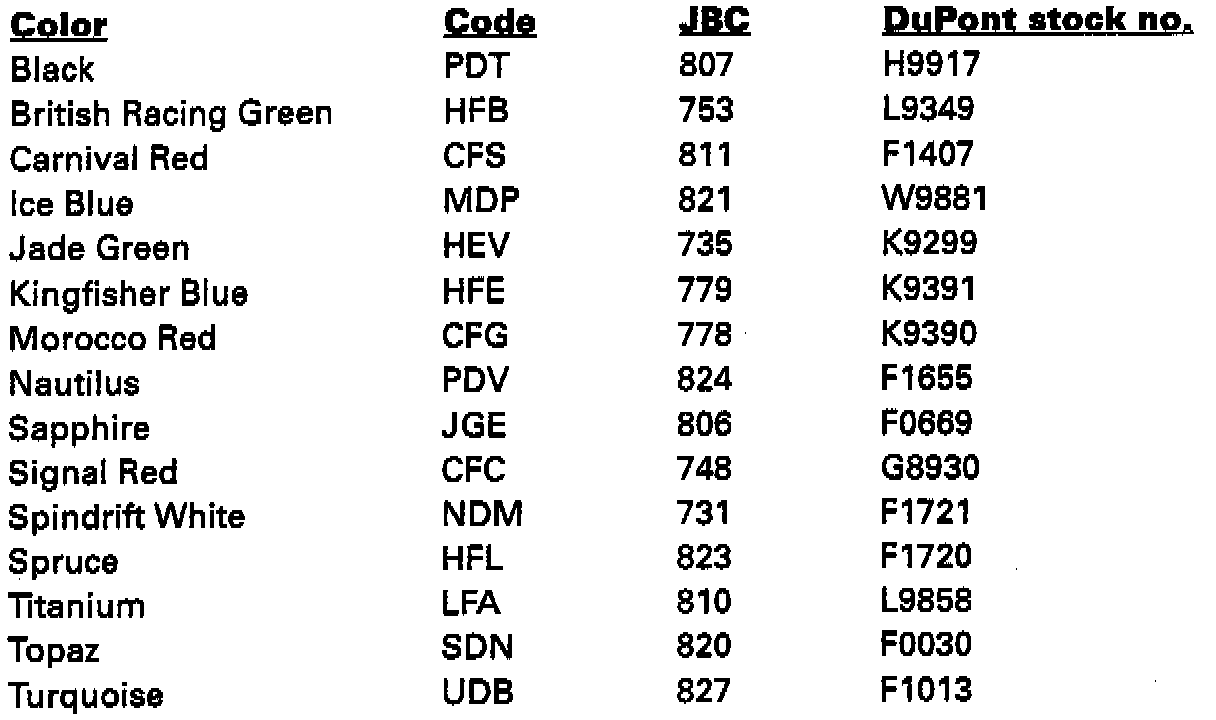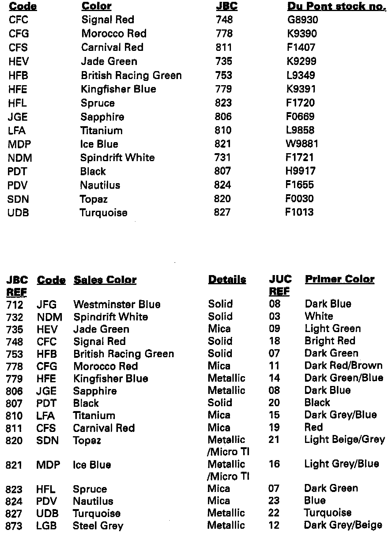 Also on the second chart, paint colors are listed with details for the corresponding primer color.