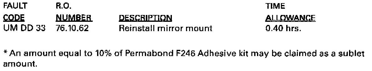 MIRROR MOUNTING REPAIR PROCEDURE