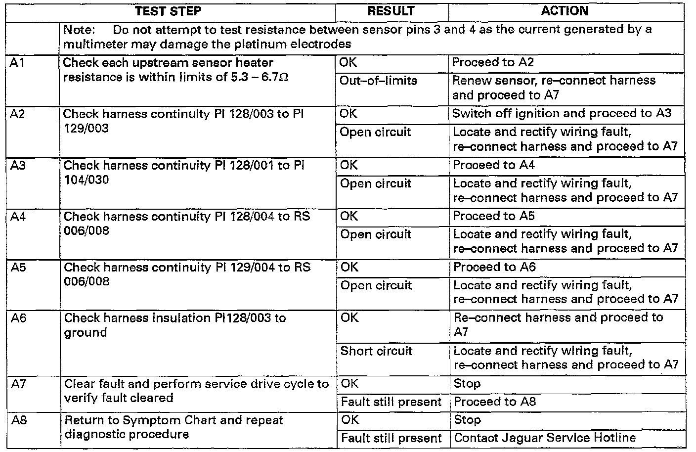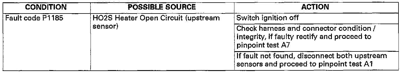 NOTE: Due to software configuration it is necessary to test both upstream sensors during fault diagnosis. Ensure that sensors are reconnected correctly to avoid further engine management problems.HEATED OXYGEN SENSORS - P1185