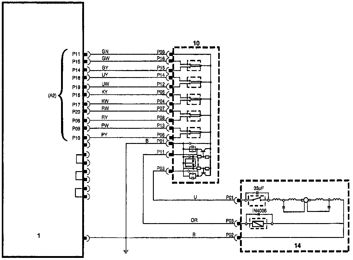c. Test the operation of the lumbar pump switches (at pins, 03 and 11) by checking that voltage on each pin toggles between ground and +12 V with each switch operation.