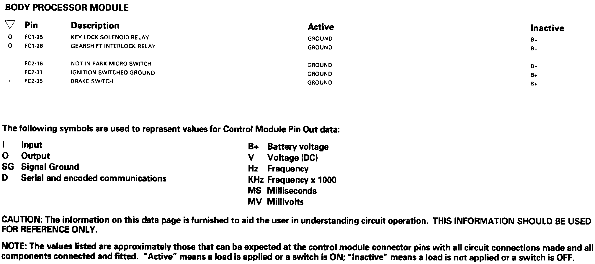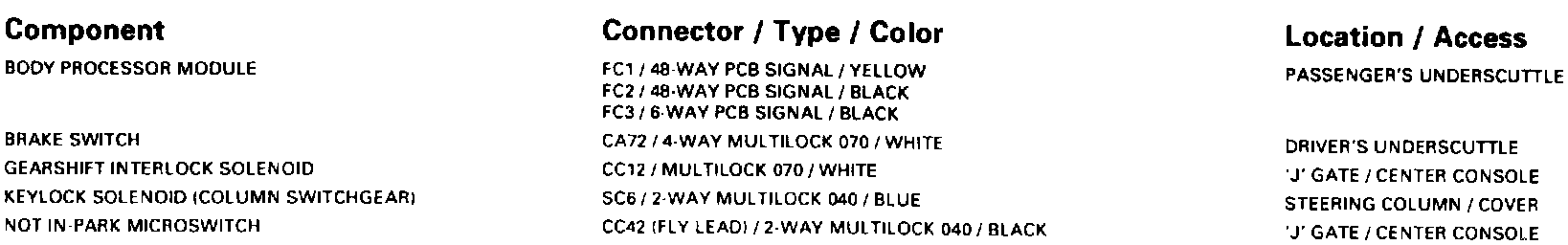 Gearshift Interlock: Control Module Pin Out Information: