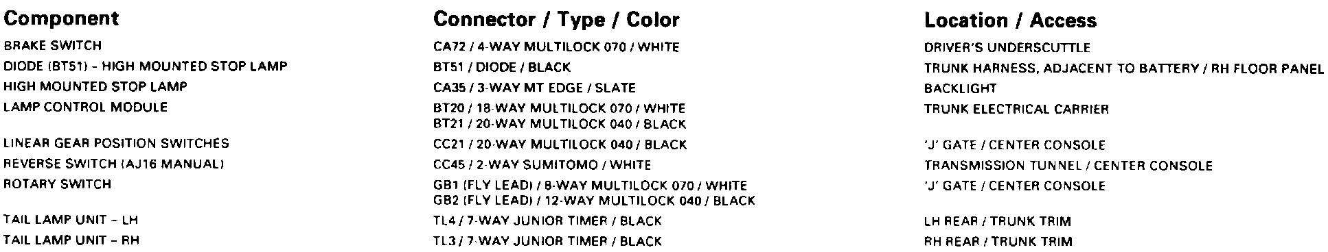 Stop Lamps; Reverse Lamps: Harness-To-Harness Connectors: