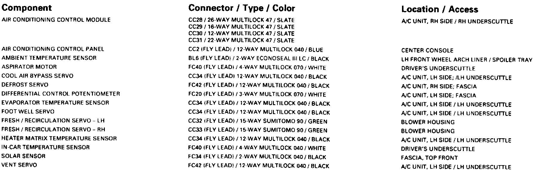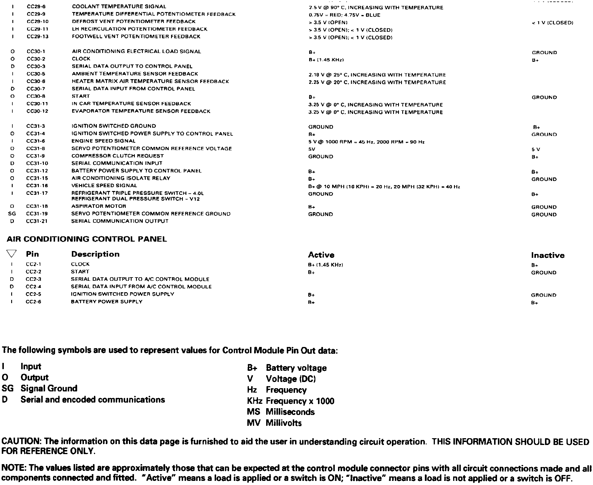 ���Climate Control System, Part 1: Control Module Pin Out Information: