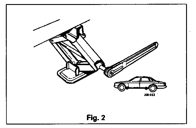 The jack provided in the vehicle toolkit engages with jacking points situated below the body side members, in front of the rear