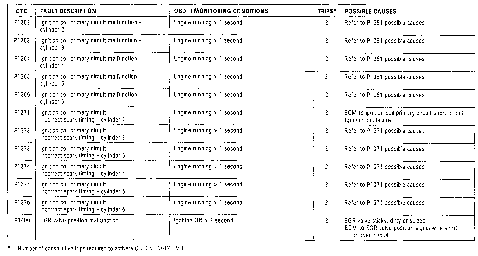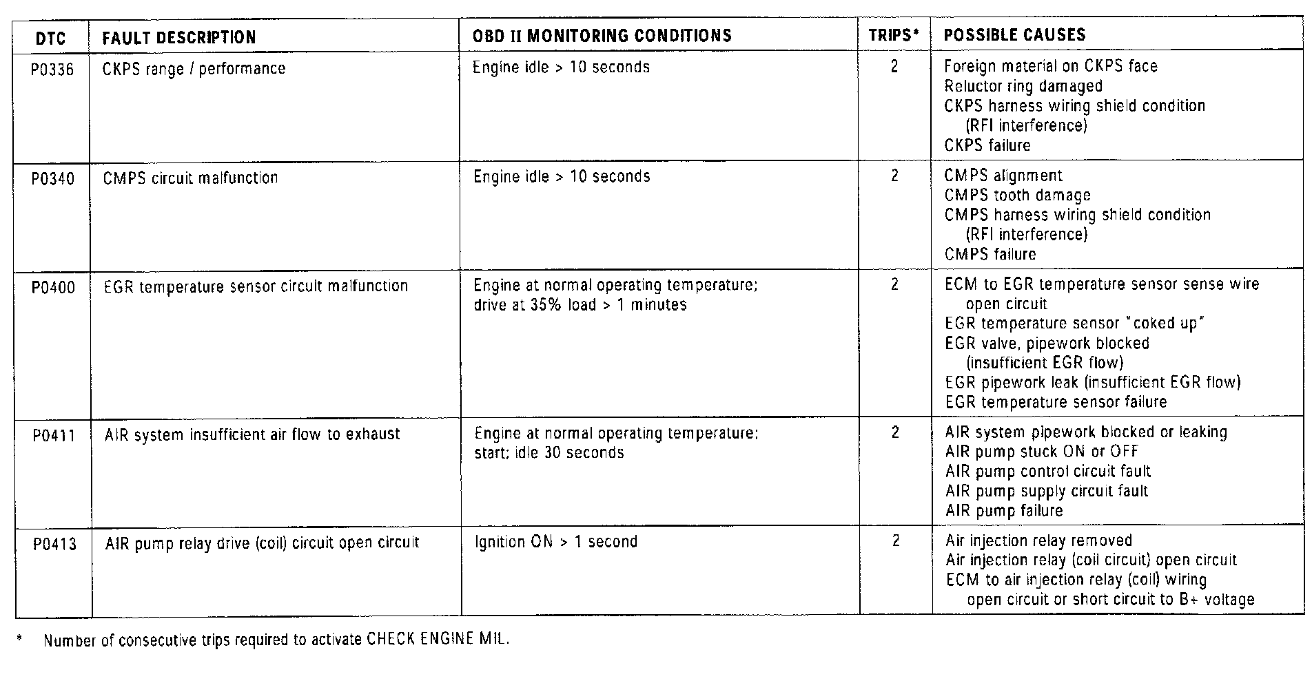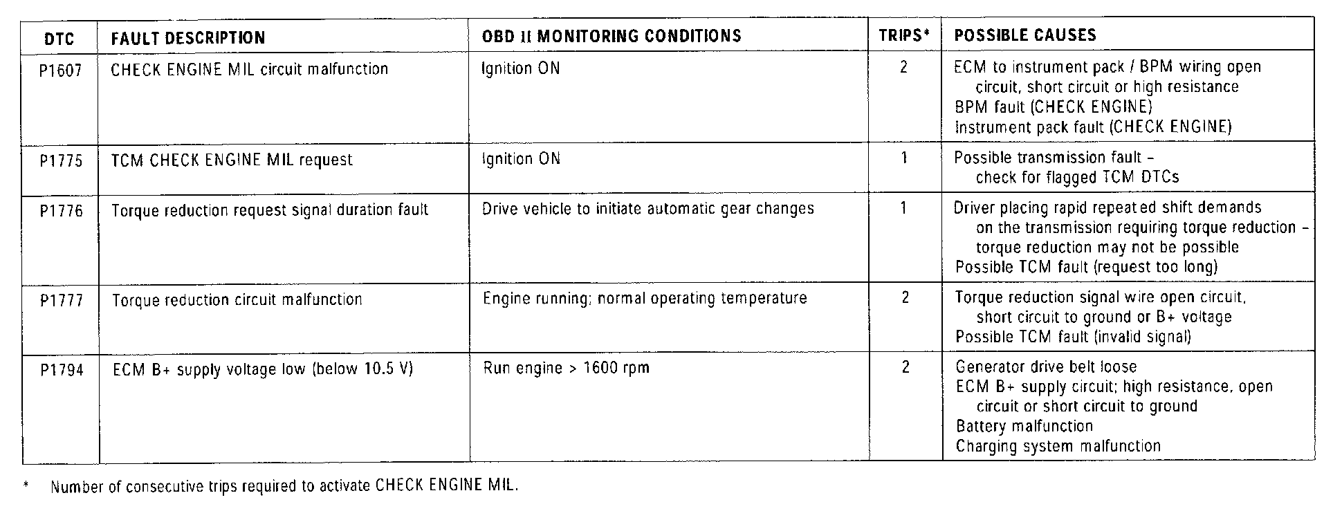 NOTE: For additional "P" Codes not listed in this summary, refer to the Transmission Control DTC Summary.