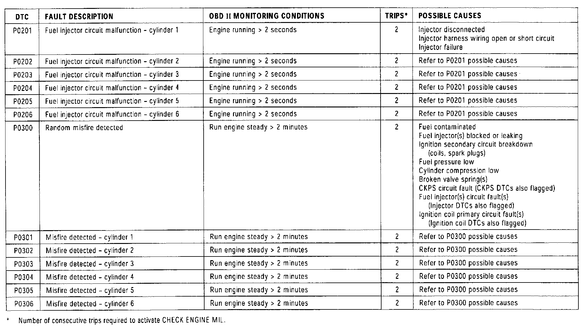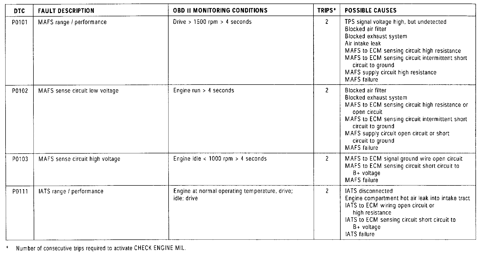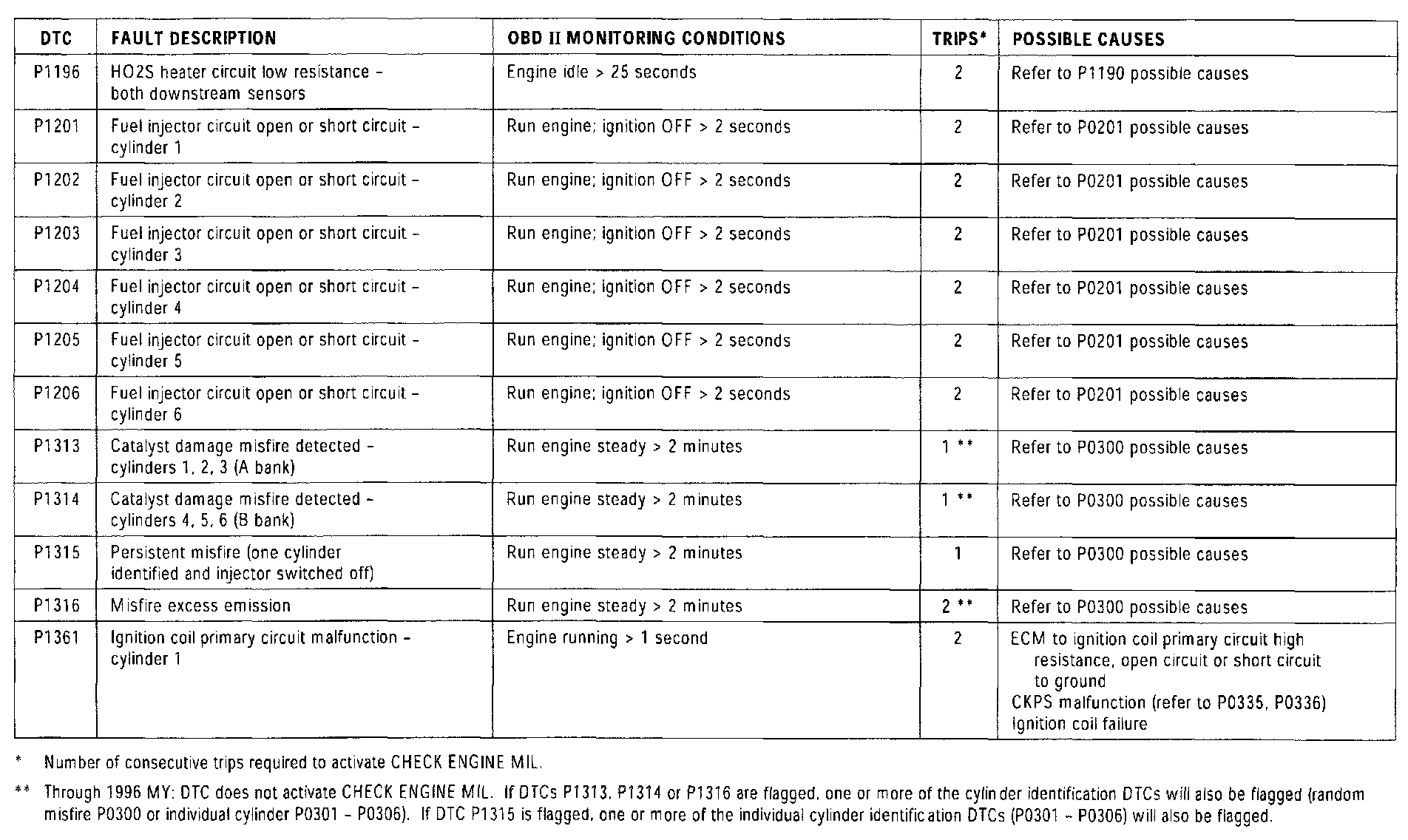 NOTE: For additional "P" Codes not listed in this summary, refer to the Transmission Control DTC Summary.