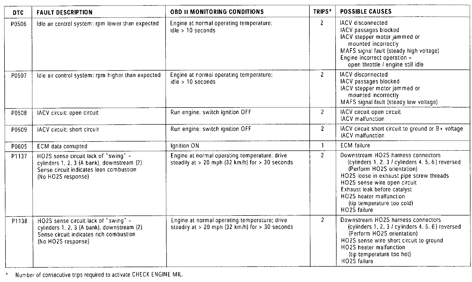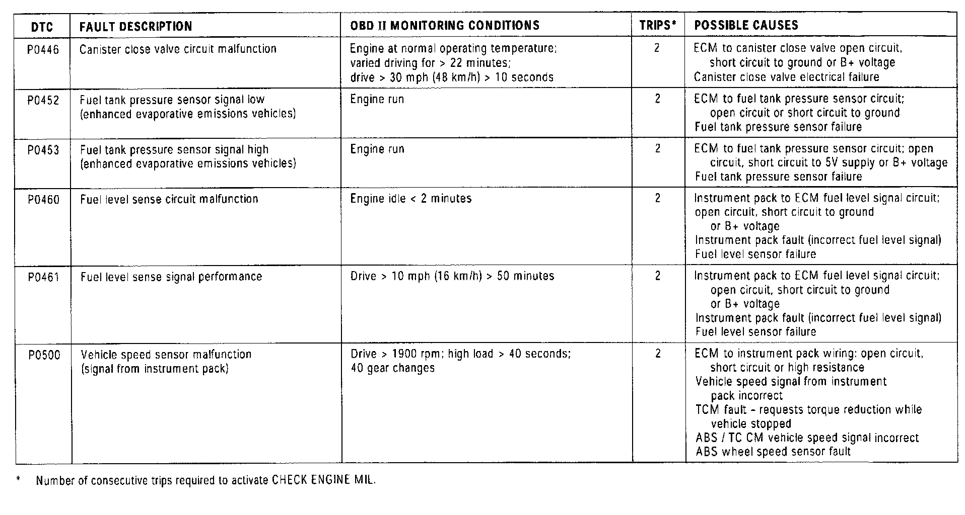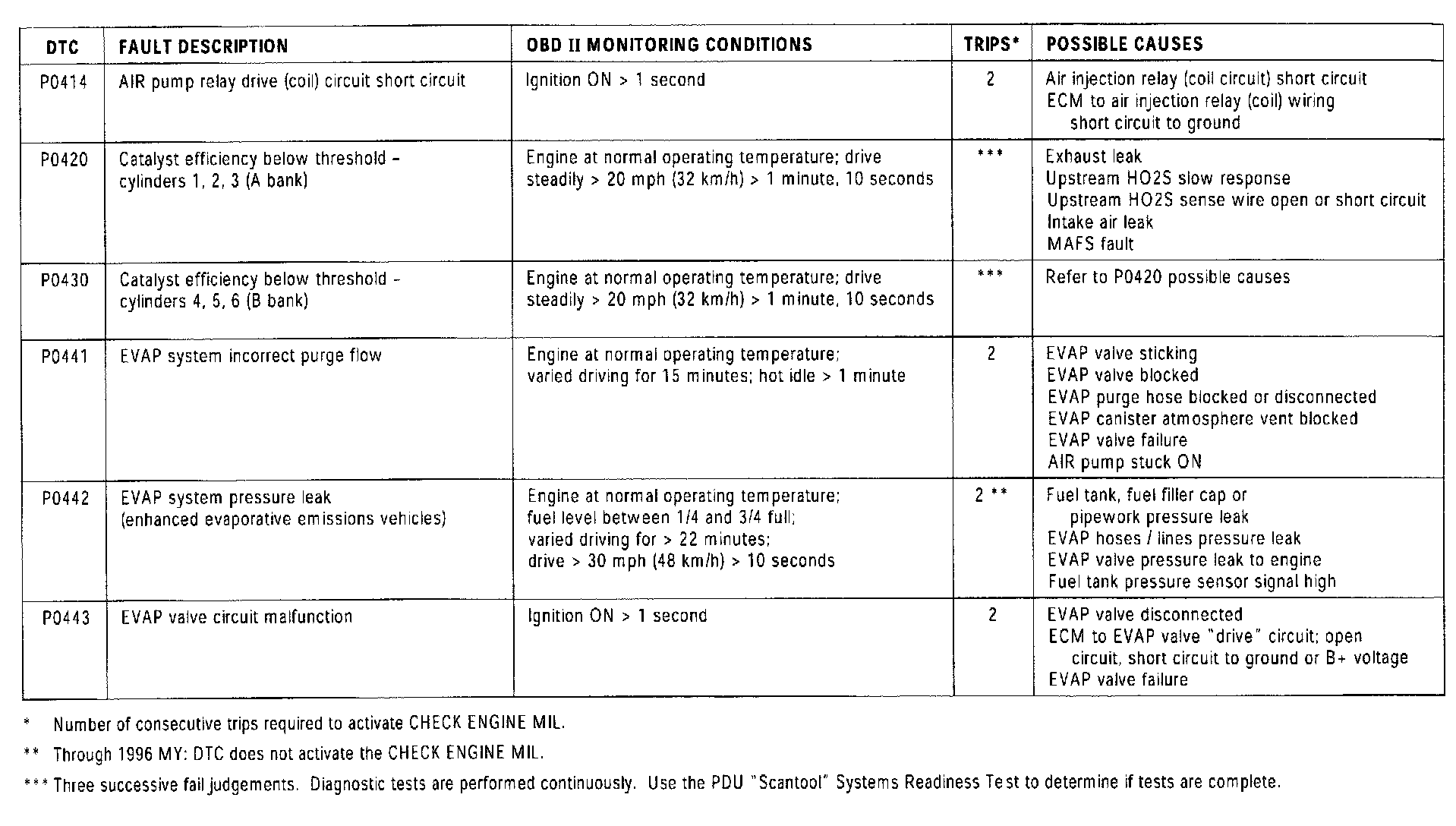 OBD II MONITORING CONDITIONS: