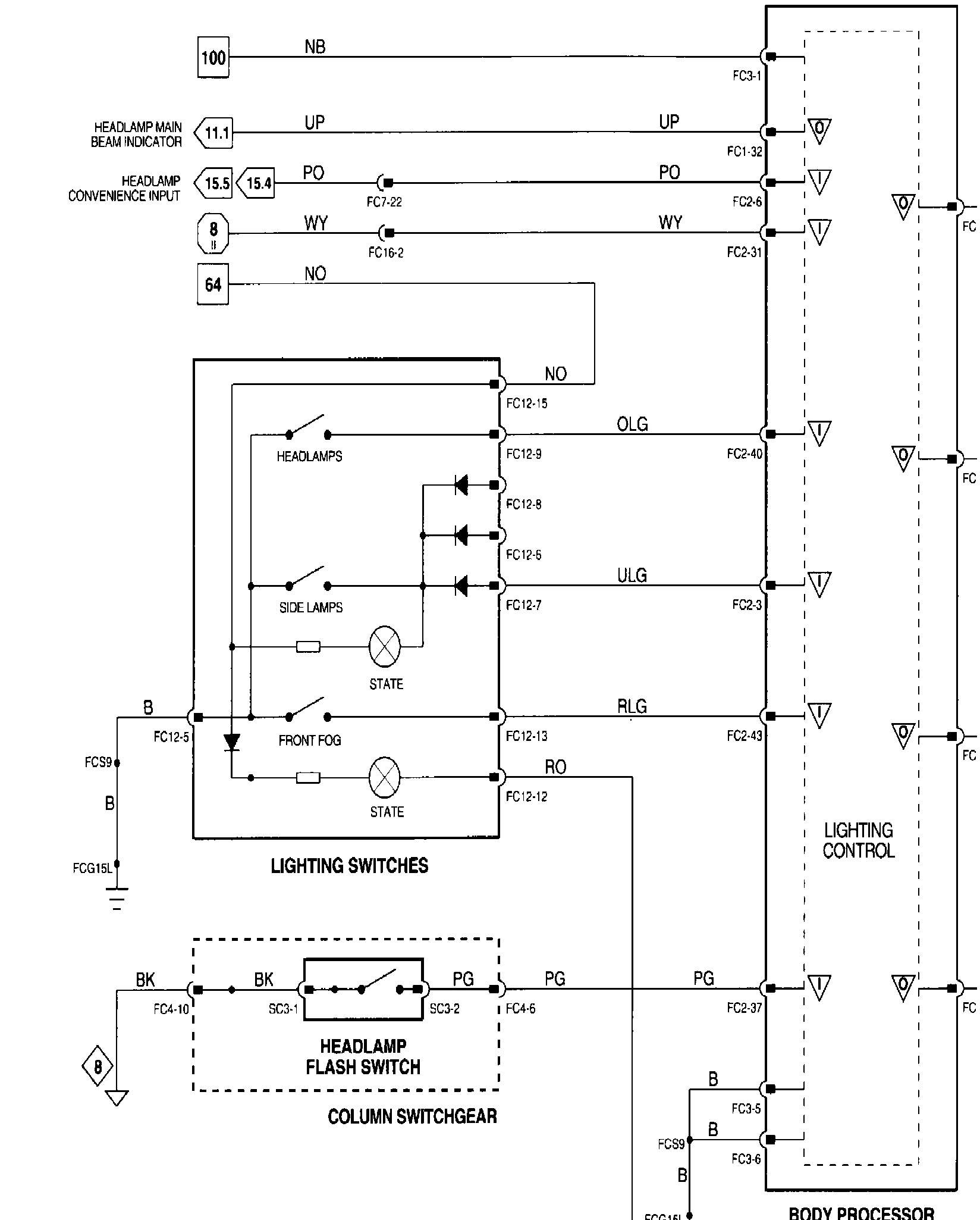Headlamps; Front Fog Lamps; Front Side Lamps: Grounds: