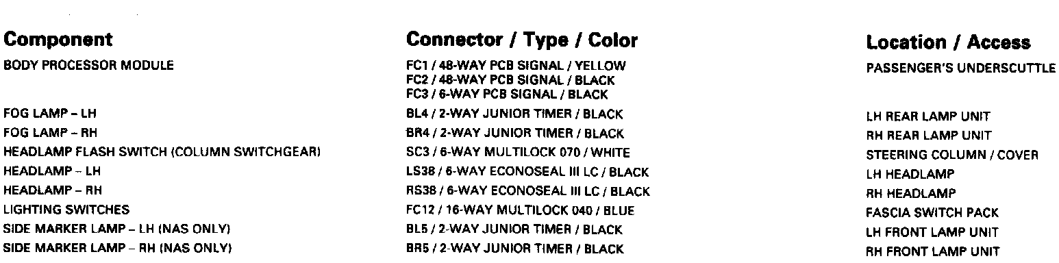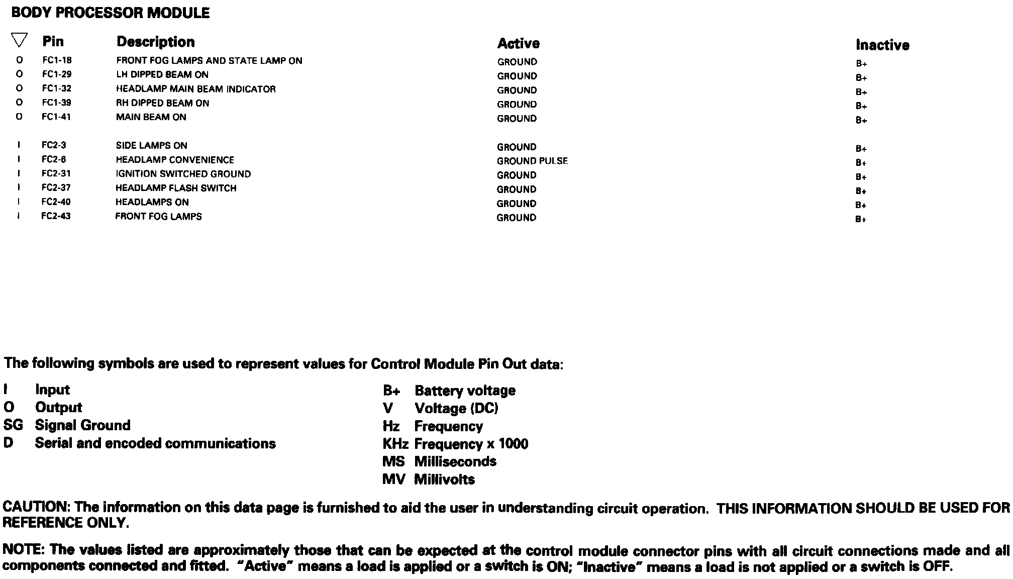 Headlamps; Front Fog Lamps; Front Side Lamps: Control Module Pin Out Information: