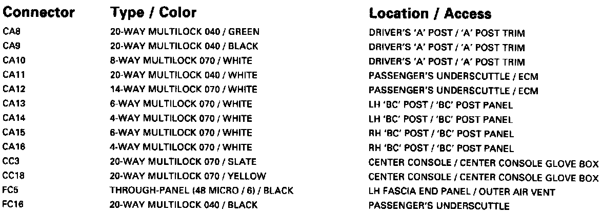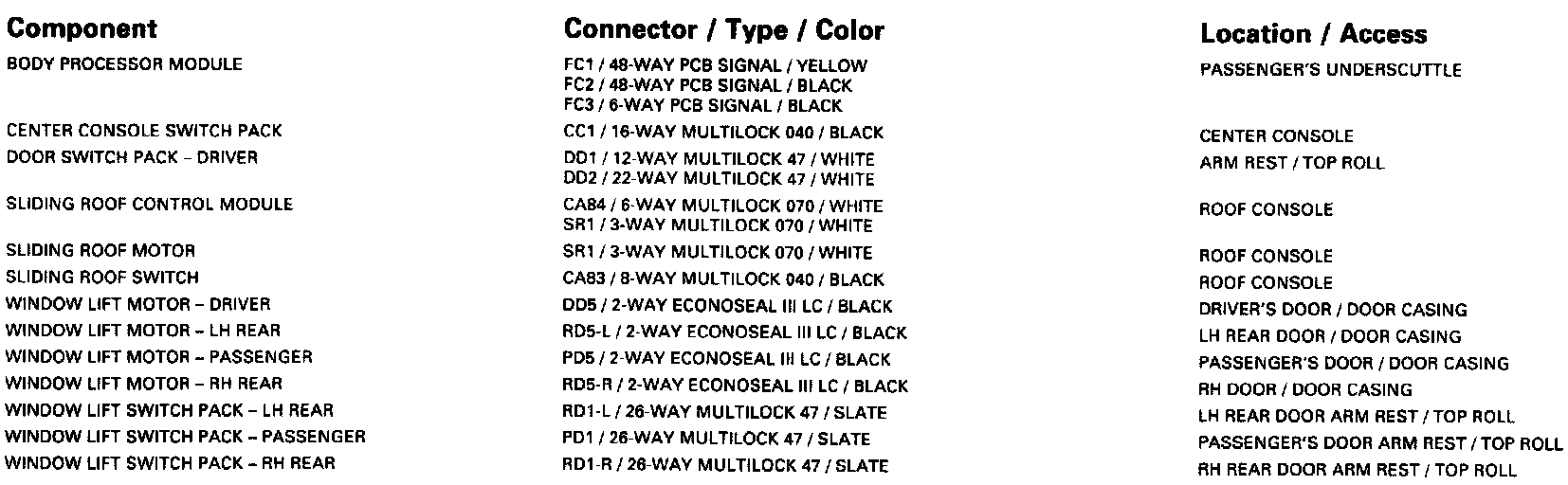 Window Lifts; Sliding Roof-LHD: Harness-to-Harness Connectors: