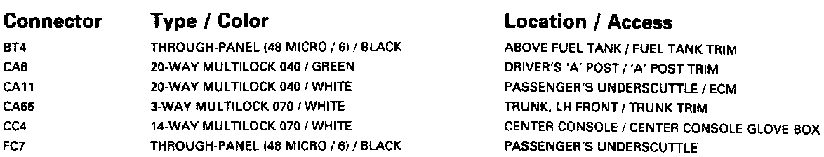 <�����Control Module Connector Pin Identification And Location: