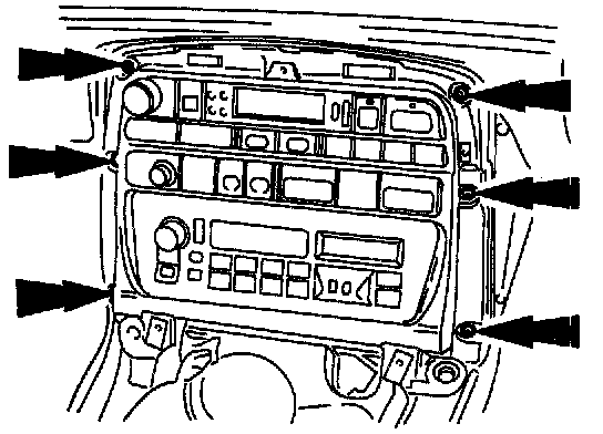 4. Slacken and remove the six radio console securing screws and partially withdraw the console for access.