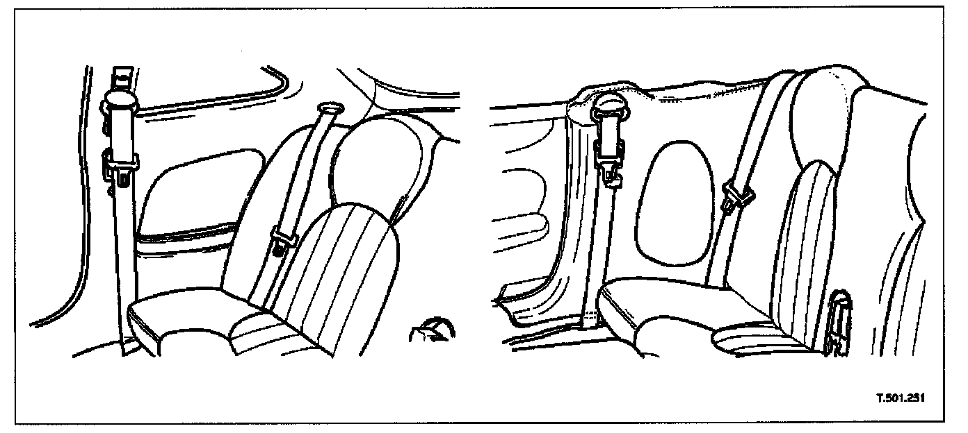 Styled for dedicated installation in the coupe or convertible, the rear seats are wire framed units trimmed to match the front seats. There is no provision for rear seat adjustment on either model. Child seat mountings are provided where legally required.