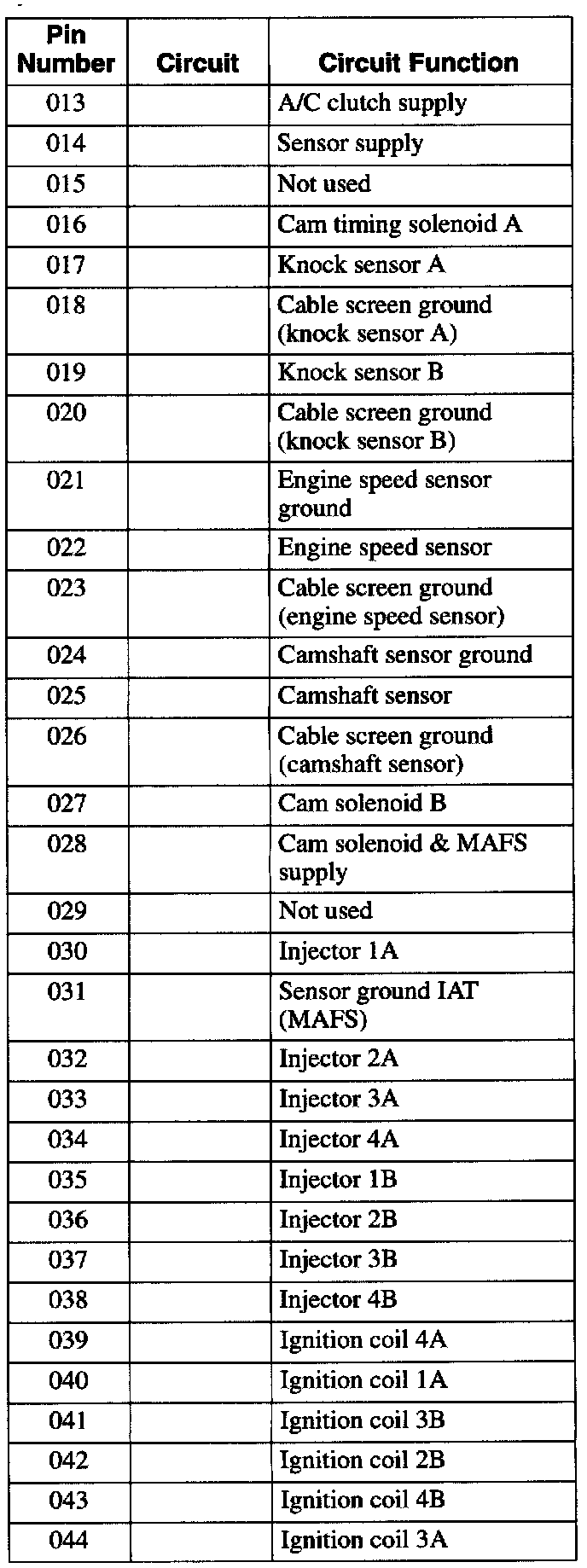 Engine Harness Connector and Pin Identification PL001