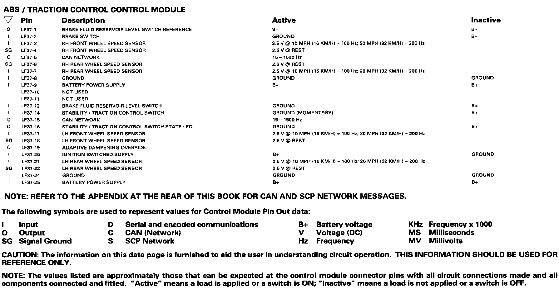 Anti-Lock Braking; Traction Control: Control Module Pin Out Information: