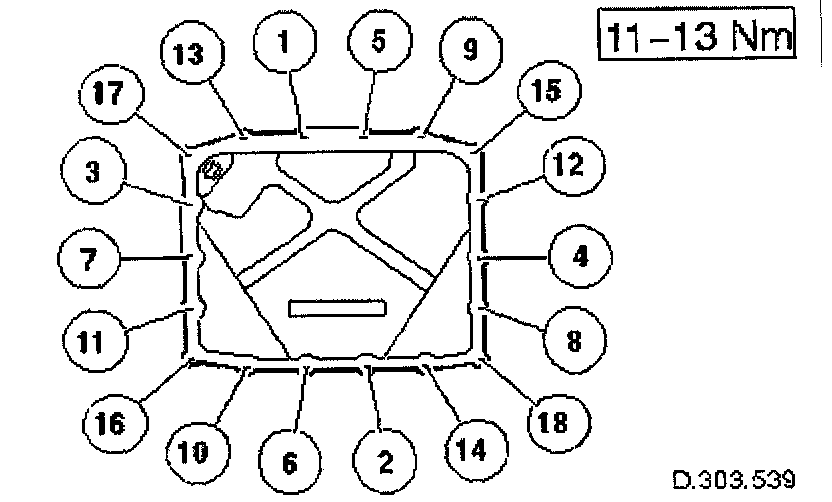4. Tighten the bolts to the correct torque figure 11 - 13 Nm, in the sequence indicated.