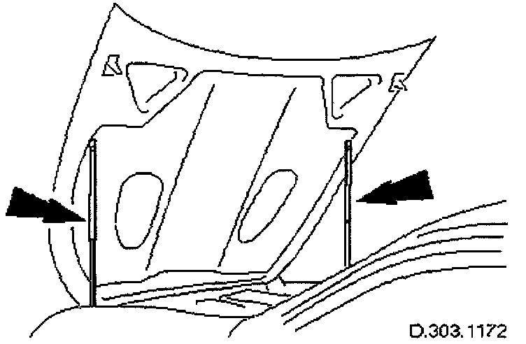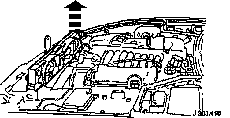 Apply masking tape to the front edge of the engine compartment cover to protect the paintwork during removal and storage.