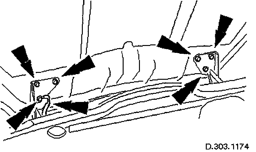 Slacken the clamps (left-hand and right-hand sides), catalytic converter to front muffler.