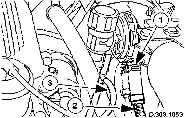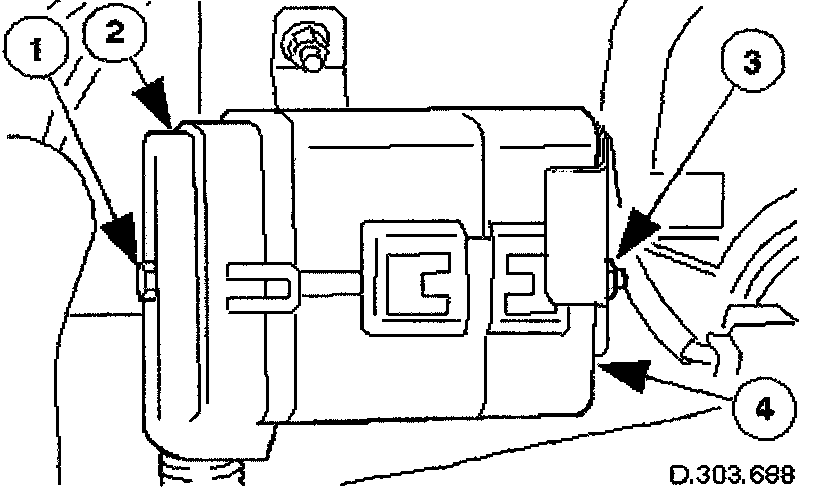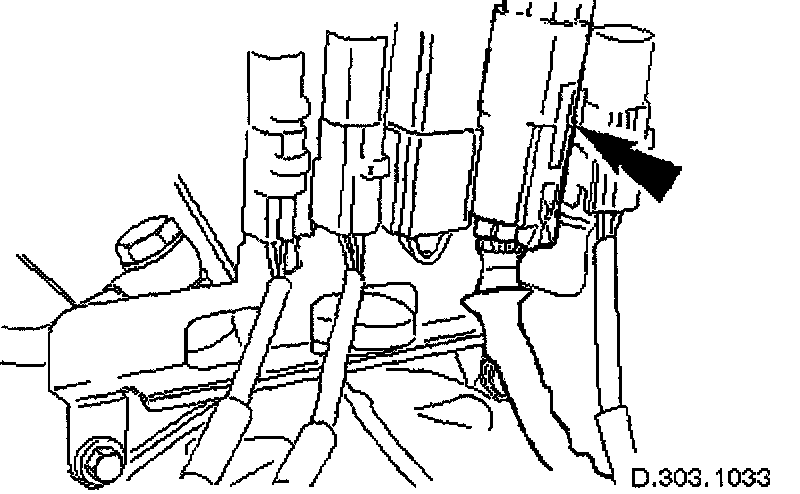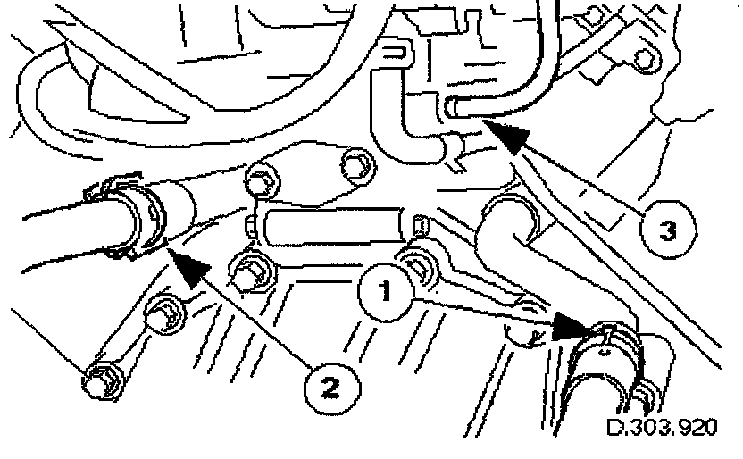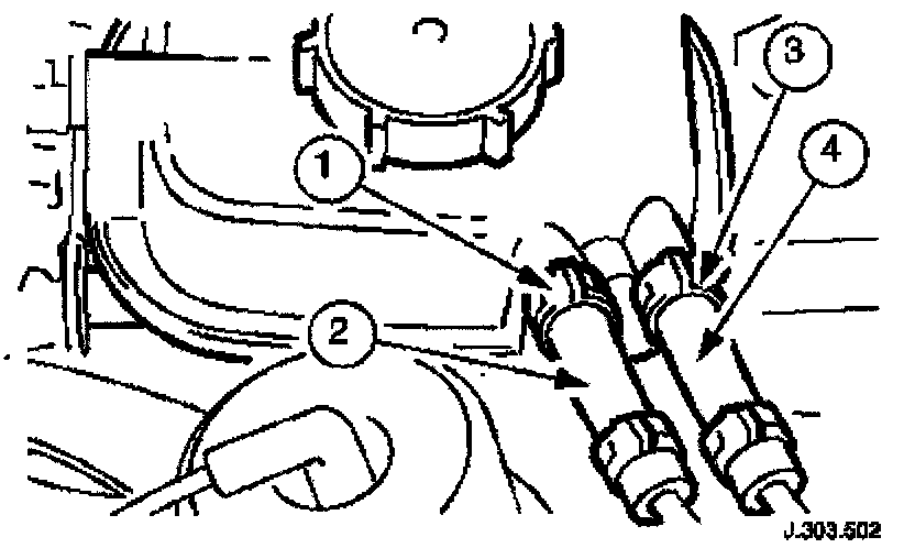 Disconnect the fuel hoses at the Quick Fit connectors, using special tool 310-044 for the feed hose and 310-54 for the return hose.