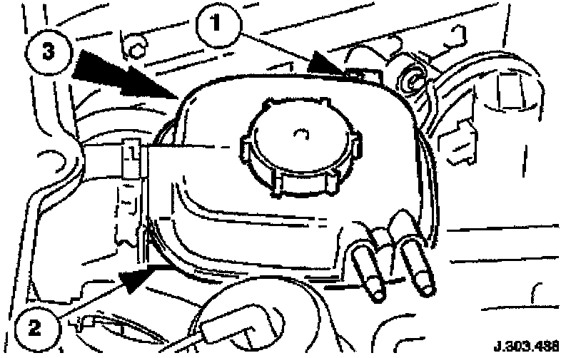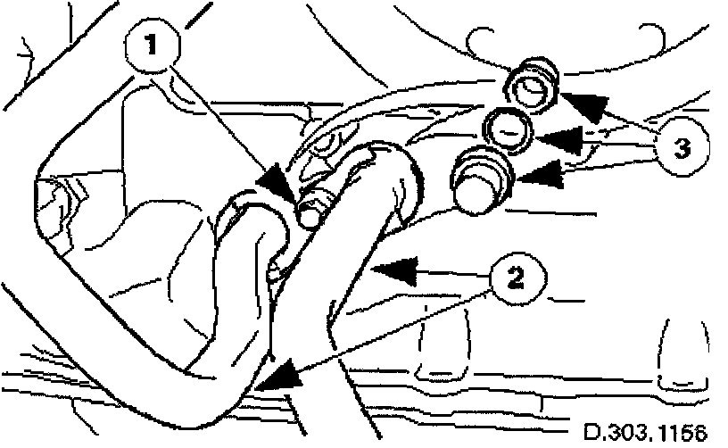19. Place a cloth under the expansion tank to absorb any spillage caused by disconnecting the hoses.