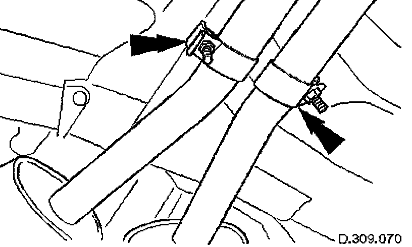 Release the hose clip (expansion tank to radiator air bleed hose).