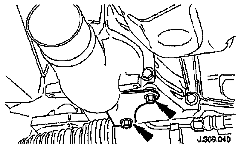 Remove the bolts which secure the downpipe to the lower mounting bracket.