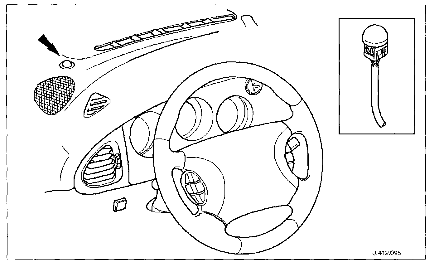 The solar sensor is mounted on the top surface of the fascia between the driver's defrost grille and speaker grille.