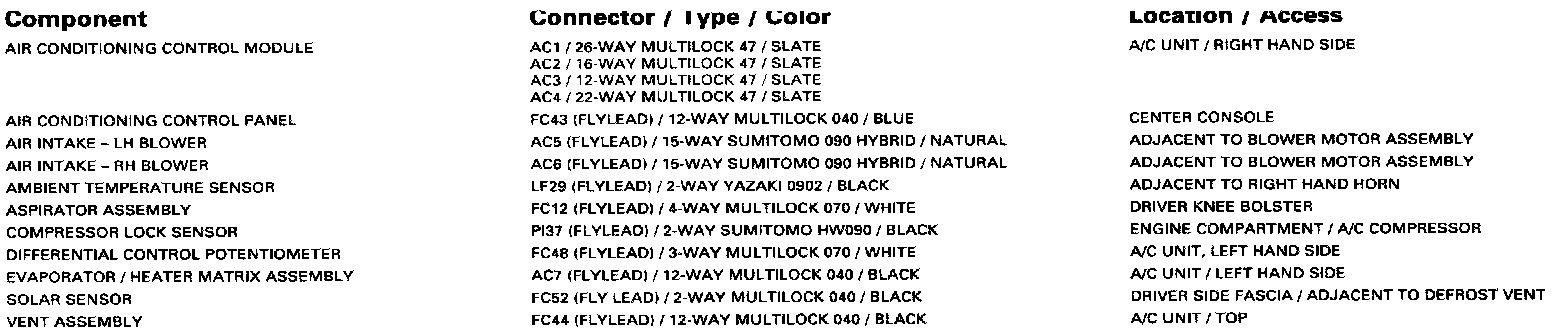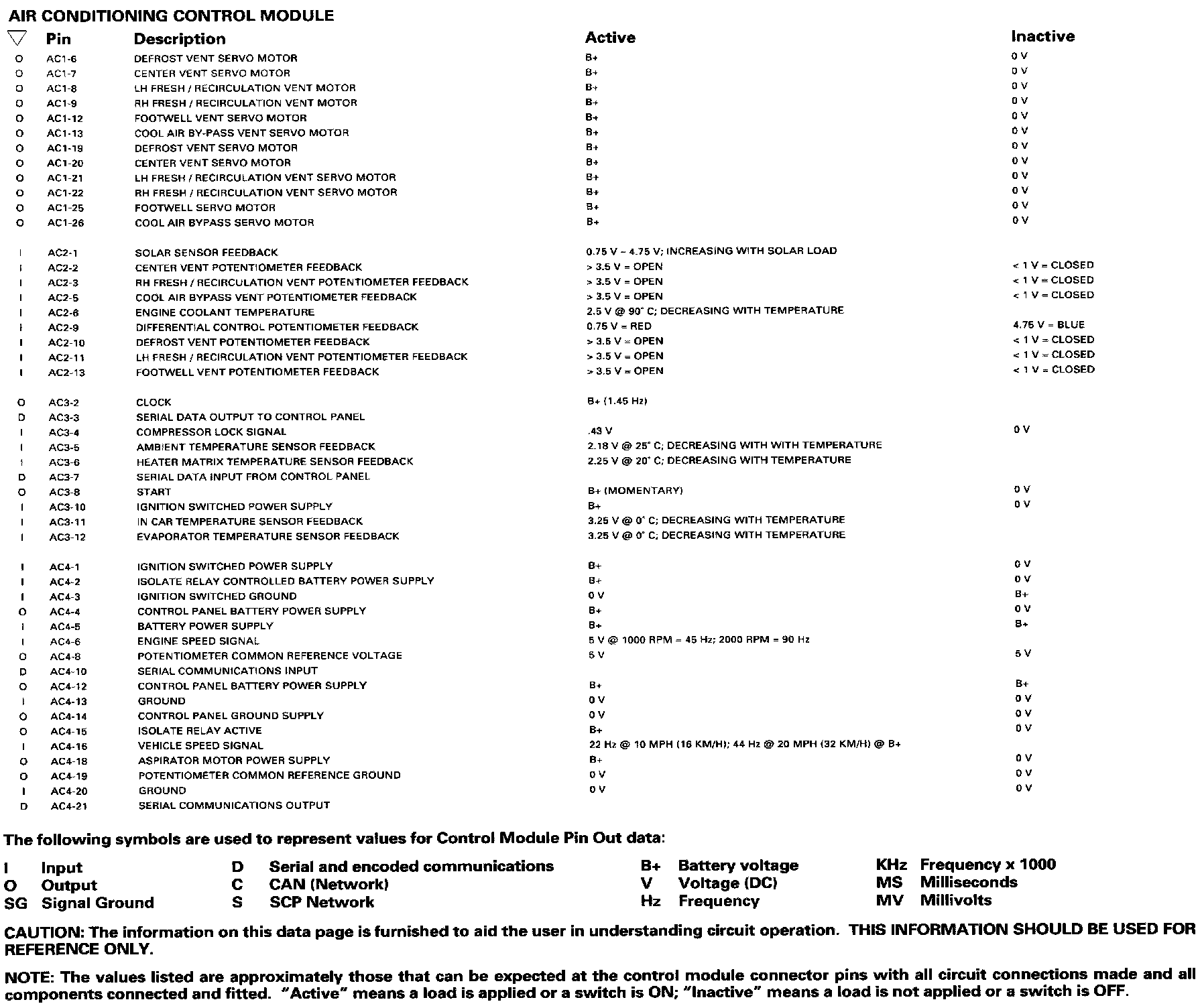 Climate Control, Part1: Control Module Pin Out Information:
