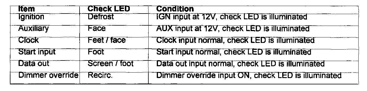 FAN - Switch ignition to ON DEFROST & RECIRC lines checked - State lamps will illuminate if all is