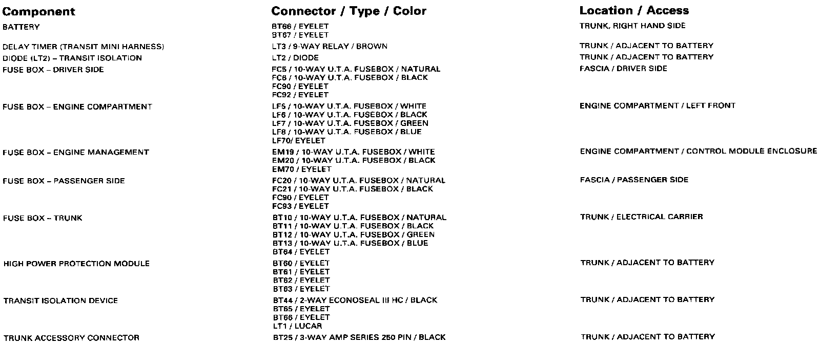 Main Power Distribution: Harness-To-Harness Connectors: