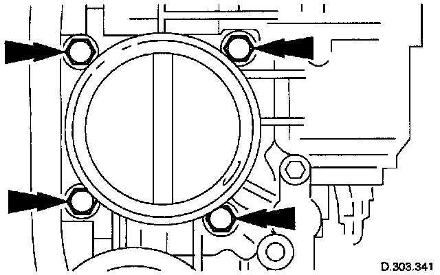 8. Remove the throttle body to induction elbow fixings (4) and pull the assembly clear