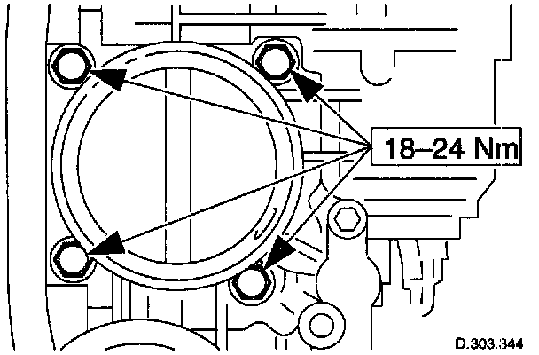 2. Ensuring that the mating faces are clean & using a new gasket, fit the throttle assembly
