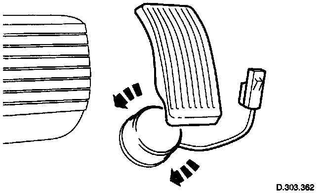 7. Push the throttle pedal until light contact is made with the kickdown switch