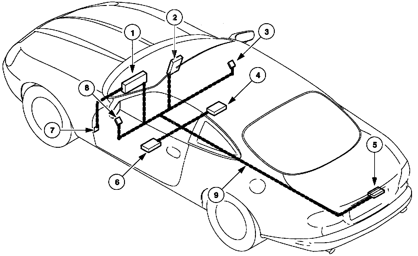 The modules illustrated, form the body control system and are connected by a two-wire multiplexed SCP bus. The SCP bus is a high speed, serial communications system.