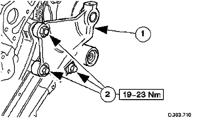 Install the two securing bolts and one nut. Tighten to 19 - 23 Nm.