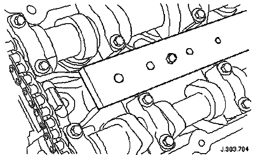 10. Install the base plate of the tappet adjusting tool 303-540 to one of the heads; use the bolts which are supplied with the tool.