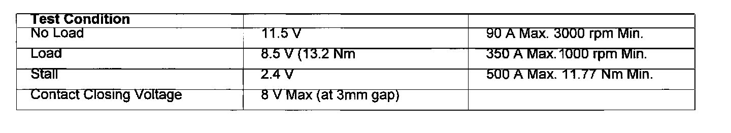 Starter Motor Bench Test Data