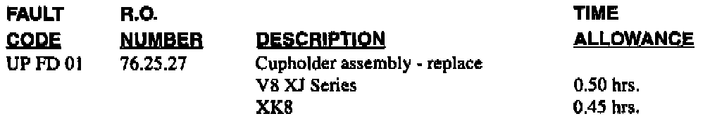 Claims for replacement of the entire console lid when only the cup-holder is defective will be charged back.