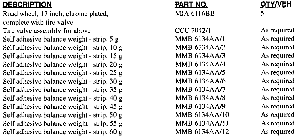 All Part No. MJA 6116BB accessory/replacement wheels shipped to dealers prior to 30th April 1997 are of incorrect specification, and require replacement under this Service Action.