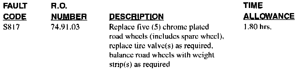 Chrome Wheels - Change Of Specification - Service Action S817