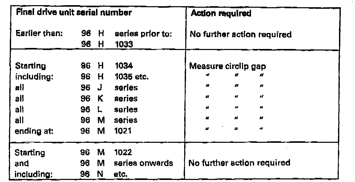 2. Determine the serial number of the final drive unit which is stamped on the vertical face on the right hand side of the final drive unit housing, facing toward the rear It can be seen from the rear of the vehicle, located 75 mm (3 inches) to the right of the oil filler level plug.